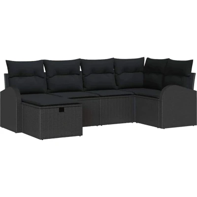 vidaXL Garden Sofa Set with Cushion 6 pcs Black Poly rattan