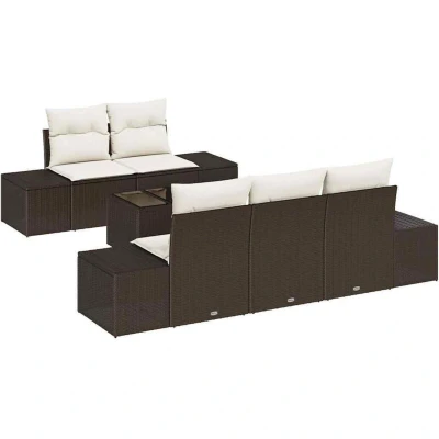 vidaXL Garden Sofa Set with Cushion 6 pcs Brown and Cream Poly Rattan