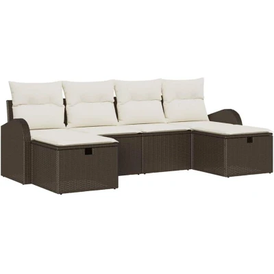 vidaXL Garden Sofa Set with Cushion 6 pcs Brown Poly Rattan