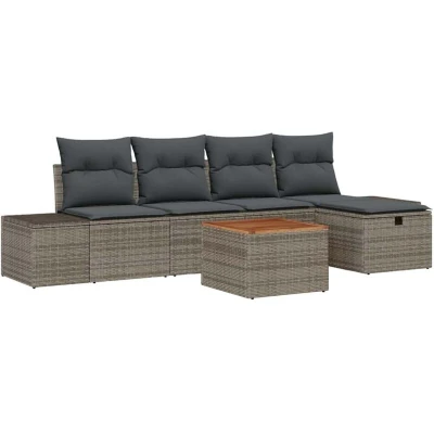 vidaXL Garden Sofa Set with Cushion 6 pcs Grey Poly Rattan