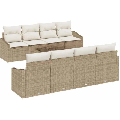 ManoManoGeneral description The Poly Rattan Garden Sofa Set is designed to enhance your outdoor experience, combining modern aesthetics with practical functionality. Its sleek lines and flexible design provide comfort and style, whether you're hosting gatherings or enjoying quiet moments. Built with a robust powder-coated steel frame and a stylish poly rattan finish, this set is both durable and visually appealing. Technical specifications Colour: Beige and cream Material: Poly rattan, steel, and glass Overall dimensions: 55 x 55 x 37 cm (L x W x H) Weight: 55.8 kg Seating area: 165 x 55 cm (W x D) Frame material: Powder-coated steel Filling material: Foam Indoor / outdoor: Outdoor only Assembly required: Yes Number of items: 7 Included components: 4 x Centre seat, 2 x Arm sofa, 1 x Table Care & Maintenance Use a cover when not in use, especially during inclement weather. Minimal upkeep required; a quick wipe down with a damp cloth keeps the cushions and frame clean. Other information