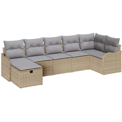 vidaXL Garden Sofa Set with Cushion 7 pcs Beige Poly rattan