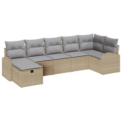 vidaXL Garden Sofa Set with Cushion 7 pcs Beige Poly Rattan