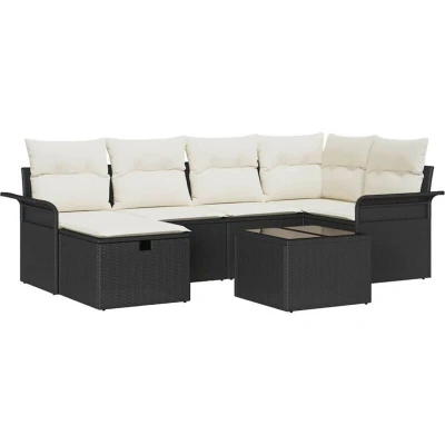 vidaXL Garden Sofa Set with Cushion 7 pcs Black and Cream Poly Rattan