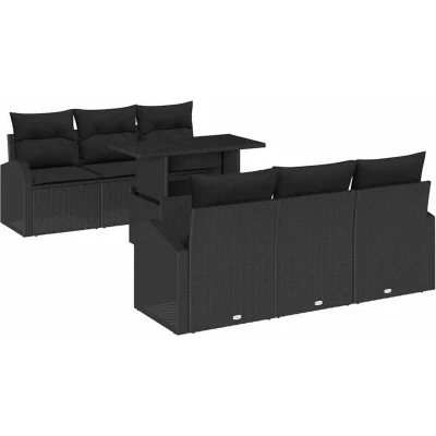 ManoManoGeneral description This 7-Person Rectangular Garden Sofa Set is elegantly crafted to be a versatile addition to any outdoor patio or garden. Designed for modern living, the set embodies simplicity and functionality, with clean lines and minimal ornamentation. Constructed with a robust poly rattan frame and tempered glass tabletop, it pairs perfectly with the dynamic needs of outdoor entertainment spaces, offering a stylish yet practical seating solution for families and friends to gather. Technical specifications Colour: Black Material: Poly rattan Back height: 69 cm Assembly required: Yes EAN: 8721158986832 SKU: 3348569 Brand: vidaXL Comprehensive Components The set includes: 2 x Centre seats 4 x Arm sofas 1 x Table Exceptional Features Adjustable feet for uneven surfaces Modular design for customizable configurations Weather-resistant capabilities for spring and summer use Reliable Care Instructions Wipe down with a damp cloth for maintenance Bring cushions inside during inclement