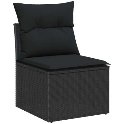 ManoManoGeneral description This Garden Sofa Set has nailed modern style with its clean lines and simple design. Made from tough poly rattan and powder-coated steel, it invites you to kick back outside without skimping on looks. You can set it up in multiple ways, making it super adaptable for your garden or terrace and adding a contemporary touch that fits right in. Technical specifications Colour: Black Material: Poly rattan Back height: 69 cm Assembly required: Yes EAN: 8721158979001 SKU: 3347786 Brand: vidaXL Compatibility and accessories Delivery contains: 2 x Centre seat 2 x Corner seat 2 x Arm sofa 1 x Garden table Usage The cushions are made from polyester fabric, providing comfy support and are tough enough for the outdoors. They’re also resistant to water and stains, so they stay inviting and cozy, time after time. Just give it a wipe with a damp cloth and bring the cushions indoors when the weather gets dodgy. Using covers when you're not using it also helps keep it safe from the