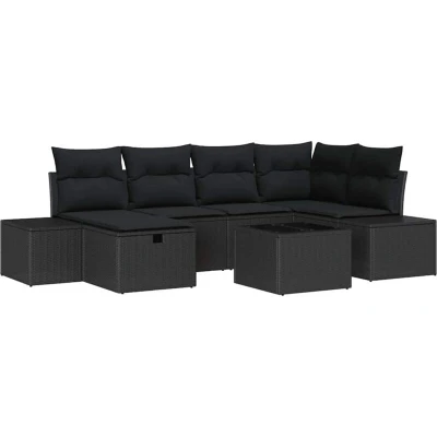 vidaXL Garden Sofa Set with Cushion 7 pcs Black Poly Rattan