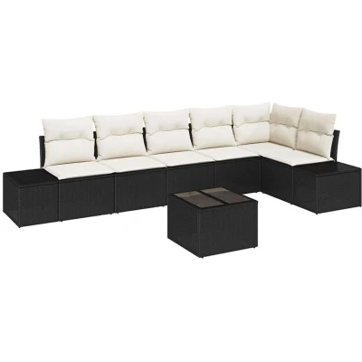 ManoManoGeneral description This Garden Sofa Set nails the balance between style and practicality, perfect for your outdoor hangouts. With a sleek modern design and clean lines, it’s a classy touch for your garden or terrace. Made from strong materials, this set can withstand the elements while keeping comfy and stylish for all your summer gatherings. Its flexible structure allows for easy rearrangement to suit any gathering or space, offering both convenience and a chic vibe. Technical specifications Colour: Brown and cream Material: Poly rattan and powder-coated steel Seat width: 55 cm Seat depth: 55 cm Max weight: 110 kg Assembly required: Yes Included components: 1 x Corner seat, 3 x Centre seat, 2 x Side sofa, 1 x Table EAN: 8721288360274 SKU: 3355756 Care & Maintenance Use a cover when not in use to keep the sofa set looking lovely. Remove cushions for cleaning and avoid harsh chemicals to prolong its life. This easy maintenance ensures it's safe and comfy for regular use. Other