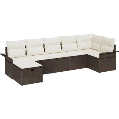 vidaXL Garden Sofa Set with Cushion 7 pcs Brown and Cream Poly Rattan