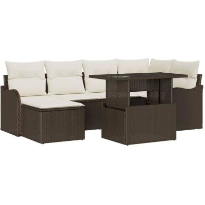 vidaXL Garden Sofa Set with Cushion 7 pcs Brown Poly rattan