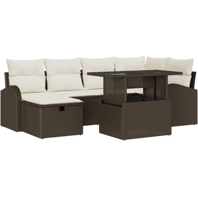 vidaXL Garden Sofa Set with Cushion 7 pcs Brown Poly rattan