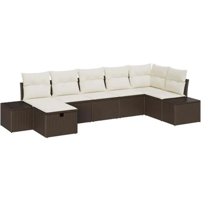 vidaXL Garden Sofa Set with Cushion 7 pcs Brown Poly Rattan