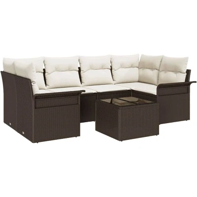 vidaXL Garden Sofa Set with Cushion 7 pcs Brown Poly Rattan