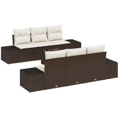 vidaXL Garden Sofa Set with Cushion 7 pcs Brown Poly Rattan