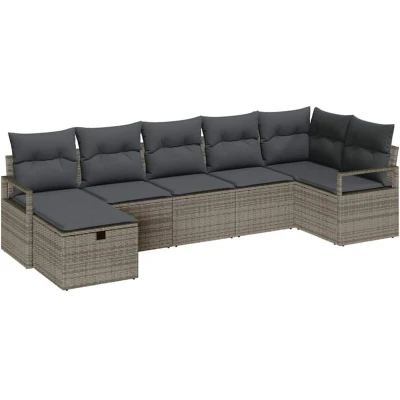 vidaXL Garden Sofa Set with Cushion 7 pcs Grey Poly rattan