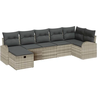 vidaXL Garden Sofa Set with Cushion 7 pcs Light grey Poly rattan