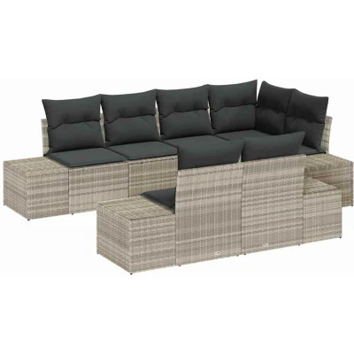 Vidaxl Garden Sofa Set with Cushion 7 pcs Light grey Poly rattan
