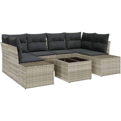 vidaXL Garden Sofa Set with Cushion 7 pcs Light Grey Poly Rattan