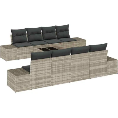 vidaXL Garden Sofa Set with Cushion 7 pcs Light Grey Poly Rattan