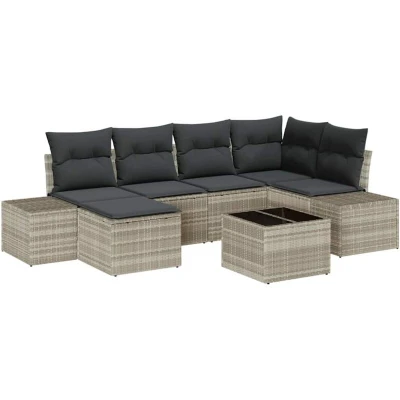 Vidaxl Garden Sofa Set with Cushion 7 pcs Light grey Poly rattan