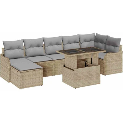 vidaXL Garden Sofa Set with Cushion 8 pcs Beige Poly rattan
