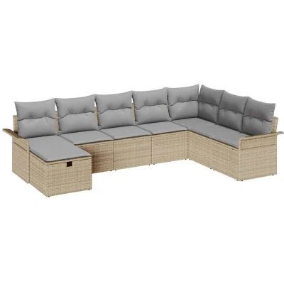 vidaXL Garden Sofa Set with Cushion 8 pcs Beige Poly rattan