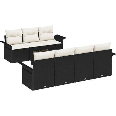 vidaXL Garden Sofa Set with Cushion 8 pcs Black Poly Rattan