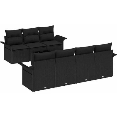 vidaXL Garden Sofa Set with Cushion 8 pcs Black Poly Rattan