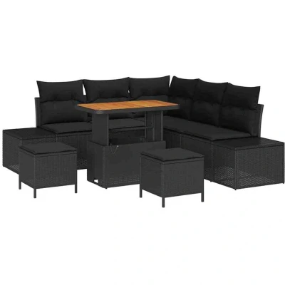 vidaXL Garden Sofa Set with Cushion 8 pcs Black Poly rattan