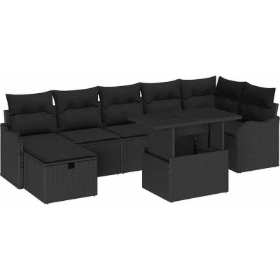vidaXL Garden Sofa Set with Cushion 8 pcs Black Poly rattan