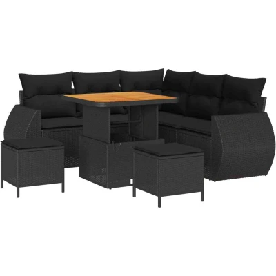 vidaXL Garden Sofa Set with Cushion 8 pcs Black Poly Rattan