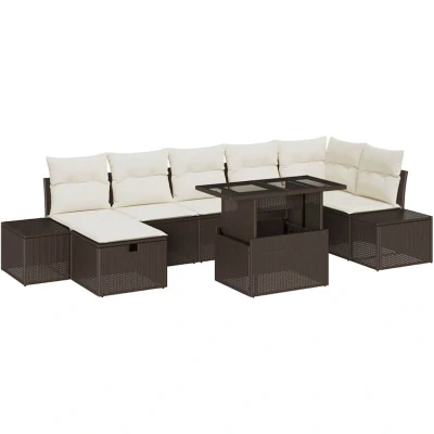 vidaXL Garden Sofa Set with Cushion 8 pcs Brown Poly rattan