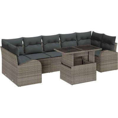vidaXL Garden Sofa Set with Cushion 8 pcs Grey Poly rattan