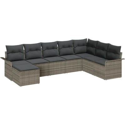 ManoManoGeneral description This stylish Garden Sofa Set is perfect for lounging outdoors, accommodating up to eight people. Its clever modular design allows for flexible arrangements, adding a modern touch to your outdoor space. With sleek lines and lovely details, this set combines contemporary aesthetics with functionality, making it an ideal spot to relax with friends and family. Whether hosting a garden party or enjoying a sunny afternoon, this set transforms your outdoor area into a luxurious retreat. Technical specifications Colour: Grey Material: Poly rattan Finish: Textured Seat depth: 55 cm Assembly required: Yes Included components: 1 x Corner seat, 4 x Centre seat, 2 x Arm sofa, 1 x Footstool, 8 x Seat cushion, 8 x Back cushion EAN: 8721158950659 SKU: 3345479 Care & Maintenance Wipe with a damp cloth regularly. Use a cover when not in use to protect from the elements. Store cushions indoors during bad weather to prolong their lifespan. Other information