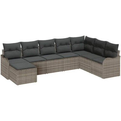 vidaXL Garden Sofa Set with Cushion 8 pcs Grey Poly rattan