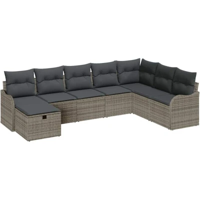 vidaXL Garden Sofa Set with Cushion 8 pcs Grey Poly Rattan