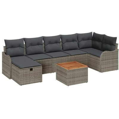 vidaXL Garden Sofa Set with Cushion 8 pcs Grey Poly rattan