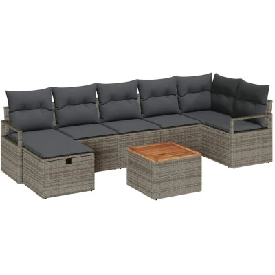vidaXL Garden Sofa Set with Cushion 8 pcs Grey Poly rattan