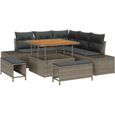 vidaXL Garden Sofa Set with Cushion 8 pcs Grey Poly rattan