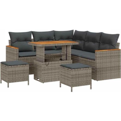 vidaXL Garden Sofa Set with Cushion 8 pcs Grey Poly rattan