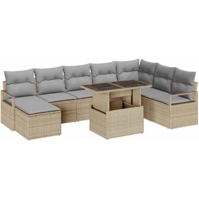 vidaXL Garden Sofa Set with Cushion 9 pcs Beige and light grey