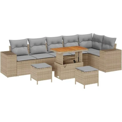 vidaXL Garden Sofa Set with Cushion 9 pcs Beige and Light Grey