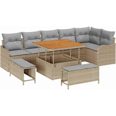 vidaXL Garden Sofa Set with Cushion 9 pcs Beige and Light Grey