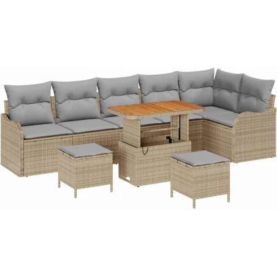 vidaXL Garden Sofa Set with Cushion 9 pcs Beige and Light Grey
