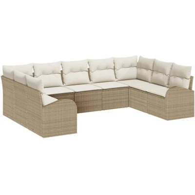 vidaXL Garden Sofa Set with Cushion 9 pcs Beige and white Poly rattan