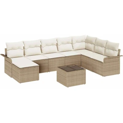 vidaXL Garden Sofa Set with Cushion 9 pcs Beige Poly Rattan