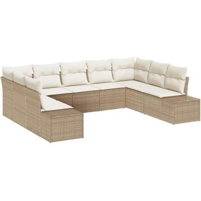 vidaXL Garden Sofa Set with Cushion 9 pcs Beige Poly Rattan