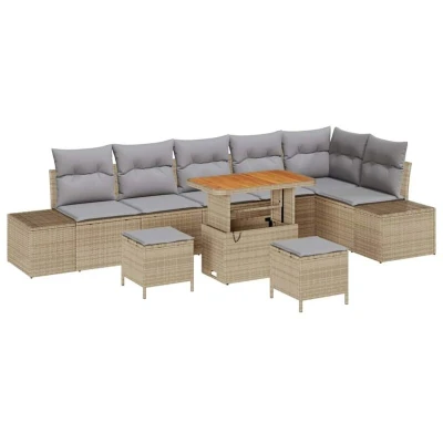 vidaXL Garden Sofa Set with Cushion 9 pcs Beige Poly rattan