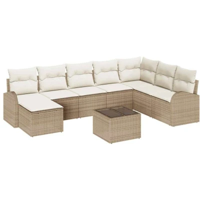 Vidaxl Garden Sofa Set with Cushion 9 pcs Beige, white Poly rattan
