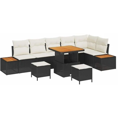 Vidaxl Garden Sofa Set with Cushion 9 pcs Black Poly rattan